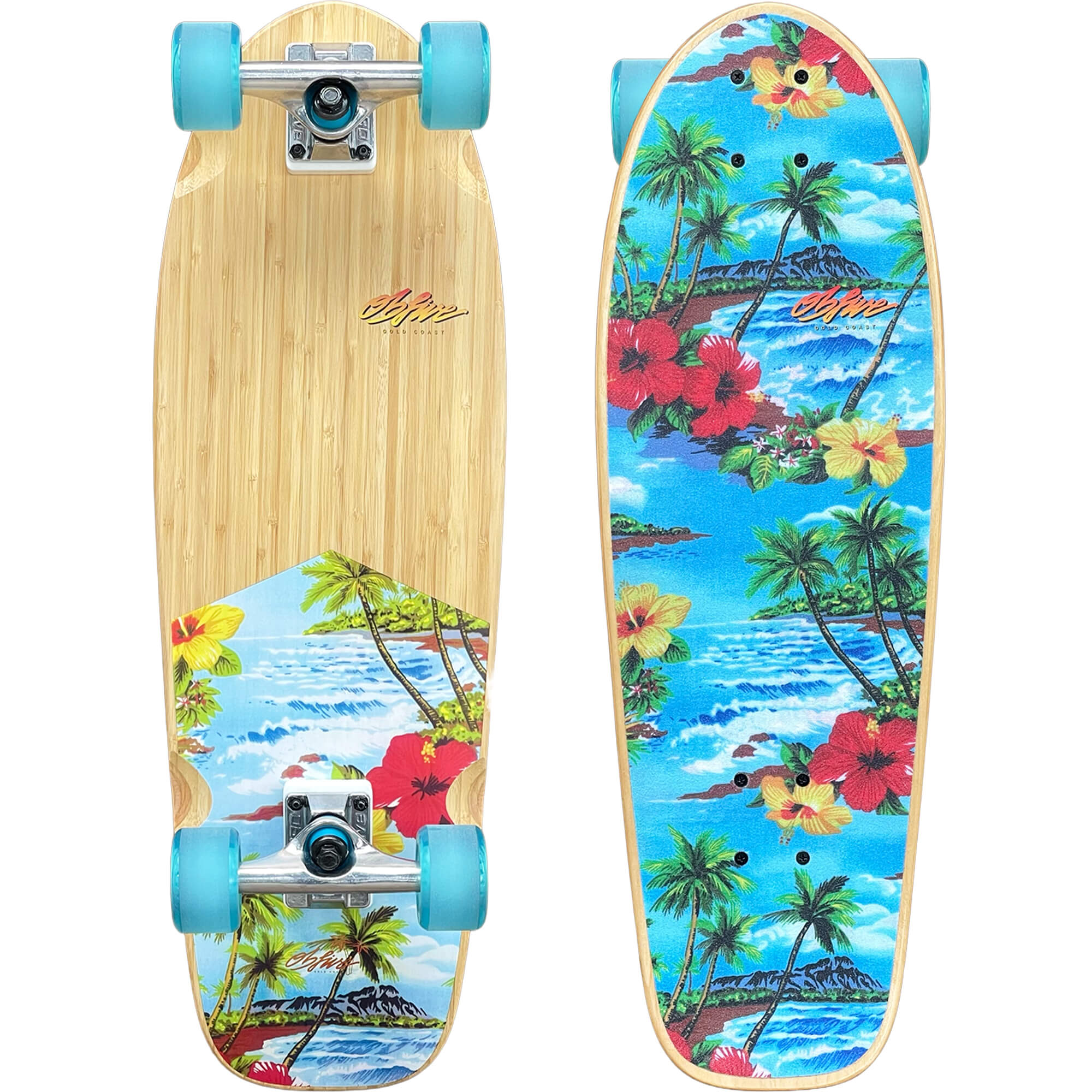 Ride in style with the OBFIVE PASTEL PLASMA BLUE 28" Cruiser in a sleek Woodstain finish. Perfect for cruising around town or hitting the skate park.